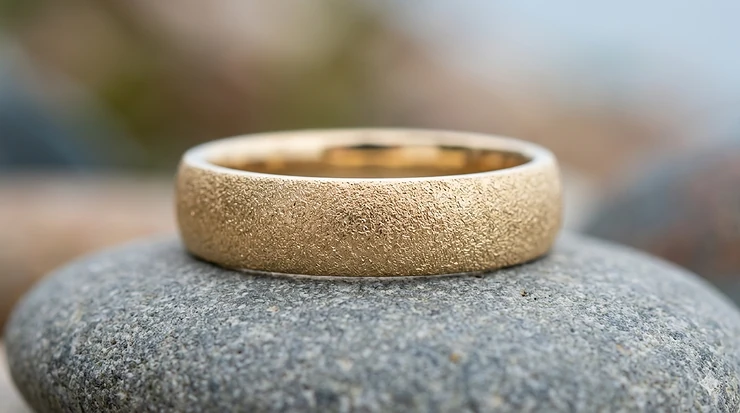 For rings specifically, jewelers often mask certain areas with tape or wax to create contrast between sandblasted and polished sections. This creates the two-tone effects you see on many modern designs, where polished edges frame matte centers.