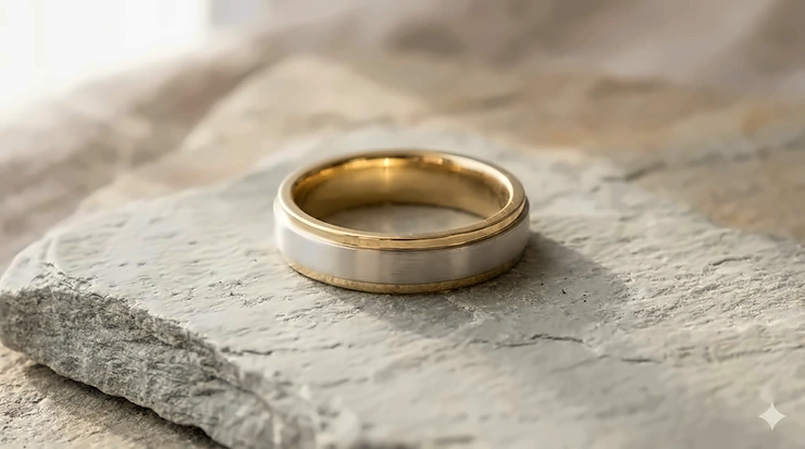 Modern couples often prefer rings that coordinate rather than match identically. A two tone finish ring makes this easy—partners can choose different widths, materials, or finish combinations while sharing the same two-tone concept. One might opt for a polished matte combo ring in tungsten while the other chooses gold and platinum, yet they clearly coordinate as a set.